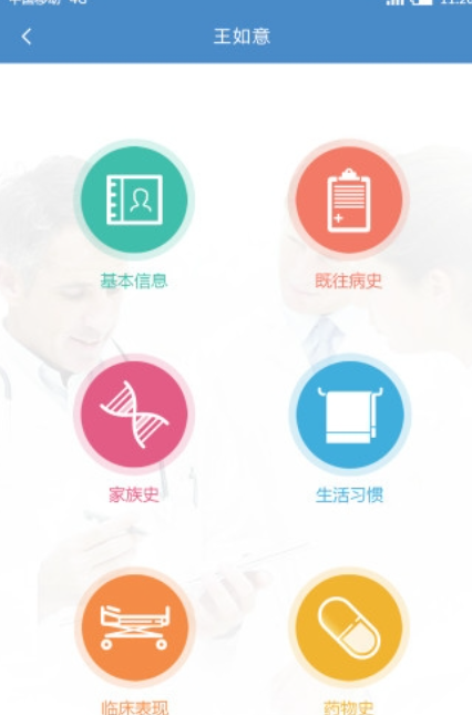 3、选择对应病人,进入其页面,查看基本信息、既往病史等分类选项。
