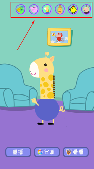 2. 位于顶部的音效头像切换按钮,点击之后,波利便能切换不同角色的声音说话,您可依据喜好选择角色对应的声音 。