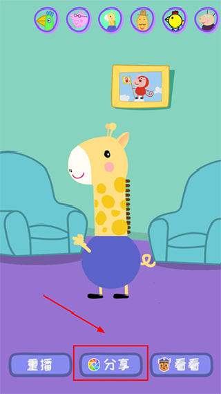 3. 页面上的【分享】按钮,点击此按钮,就能够录制这只有趣鹦鹉说话的视频,并分享给您的好友 。