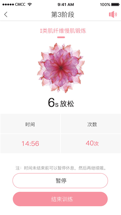 4、开始训练后进入对应阶段,查看剩余时间和次数,可暂停或结束训练。