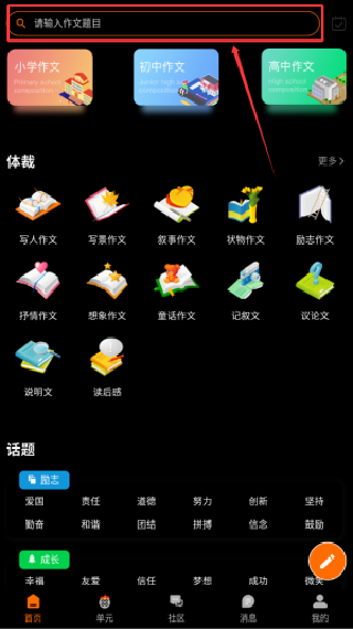 1、全新的搜索功能,可以通过输入作文题目即可快捷查找;