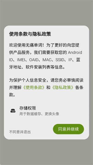 1、下载后打开软件,需点击同意并继续方可进入使用界面。