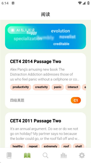 2、打开阅读页面,提供非常多的阅读资料及个性化的私人阅读。