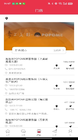 4.点击门店,了解实体门店具体位置以及所在城市,根据导航及时到达准确位置