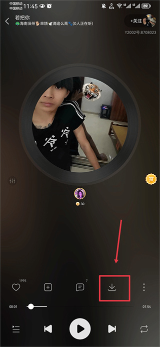 3、进入歌曲播放界面后,点击屏幕下方的“下载”按钮。