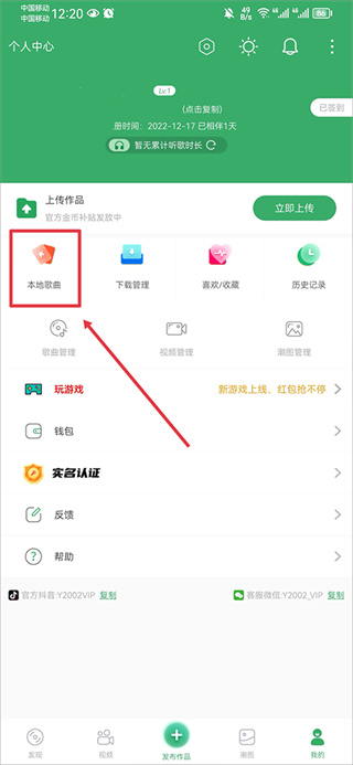 4、等待歌曲下载完成后,进入“我的”界面,在“本地歌曲”分类中即可找到已下载的音乐。