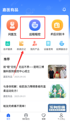 3、选择远程控功能,通过该功能远程管理相关医疗设备或数据。