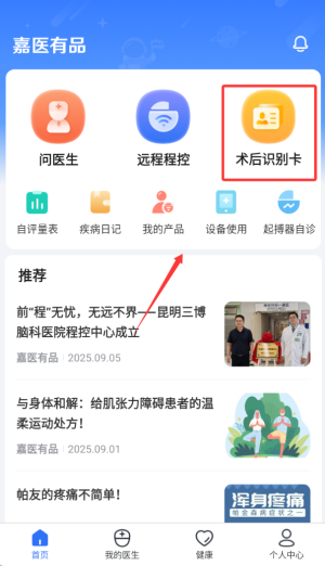 4、点击术后识别卡功能,使用该工具辅助术后相关信息的识别与管理。