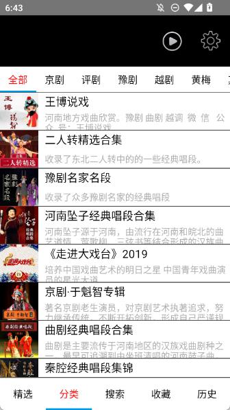3、打开分类模块,依据分类查找戏曲节目