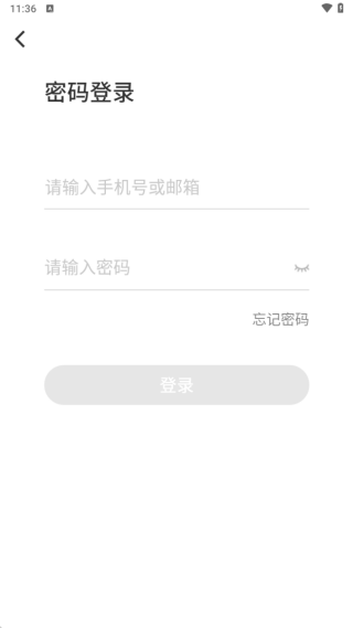 1、打开软件进入登录页,在密码登录界面输入手机号或邮箱,再填入对应密码,准备登录。