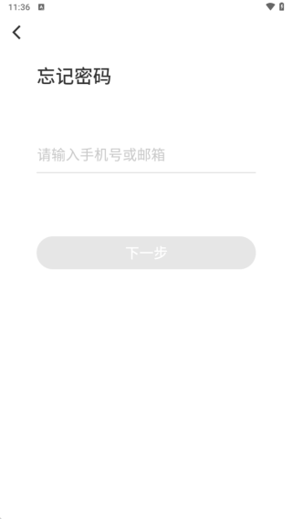 2、忘记密码,点击页面中的忘记密码选项,进入相应页面输入手机号或邮箱后点击下一步。