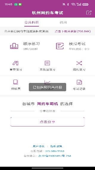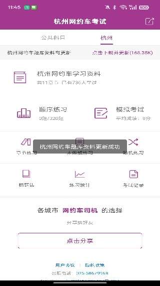 2. 进入首页选择杭州区域,找到杭州网约车考试题库