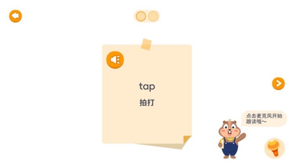 3、在板块内选择具体课程进入后,即可开启跟读单词发音进行练习。