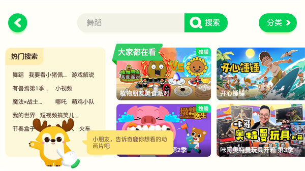 3、顶部智能搜索栏支持关键词检索,或与ai助手"奇鹿"语音交互获取推荐内容;