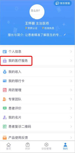 【在线接诊服务】医生开通服务后,患者可在用户端app查看医生专业信息及服务项目,支持24小时随时发起咨询。