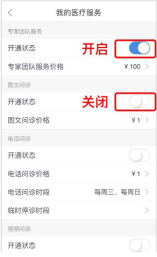 3、根据专业特长选择图文/电话/视频问诊或私人医生服务,自主设定服务价格。完成服务配置后即可开始接诊创收