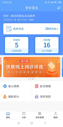 2、实时关注订单更新动态,优先抢单符合专业方向的病例。系统提供开药门诊、极速问诊、渠道转诊、会员专享、健康管理包等多类型订单供选择