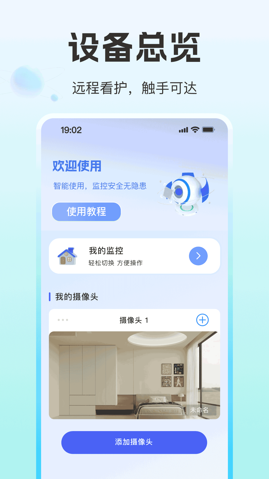 2、将监控端设备放置于适宜位置,对准需看护区域,确保画面清晰且稳定。