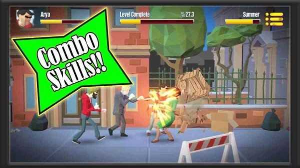 1、战斗:玩家需要在各种街头关卡场景中与各种敌人战斗,享受刺激的战斗冒险;