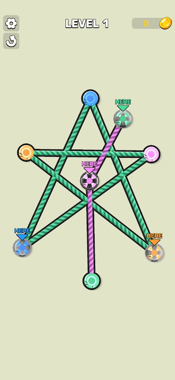 2、游戏中随机生成各种绳索样式,让每个关卡都有不同的解法。