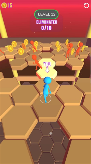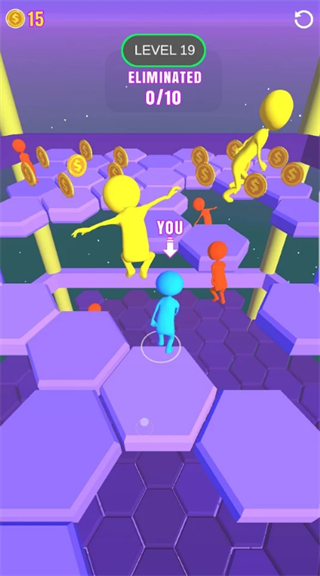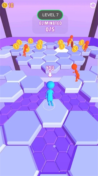 1、拥有简单的跳跃玩法,这些都非常的锻炼自己的敏捷能力,玩家在其中需要和其他的玩家置身于一个平台上完成竞争,不仅如此还要迅速的踩中平台上的六边形角色,只有这样才能继续的前进,你要运用最快的速度在其中踩六边形获取更高的分数。