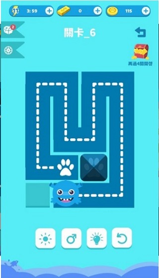 1、你在遇到百思不得解的地图时,还要点击小灯泡获取到提示,作品越是往后的关卡迷宫就会越大;