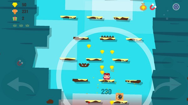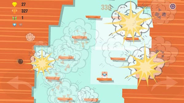 2.在跳跃的时候,您将捡到不同的道具,例如火箭,炸弹等,合理的使用道具,将带来完全不一样的体验。