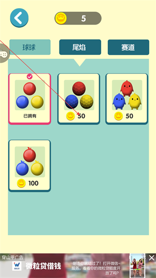 2、各种色彩皮肤的小球需要玩家解锁,通过挑战获取奖励,然后才能去商店中购买皮肤。