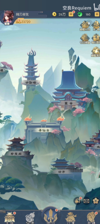 1、在本站下载并安装游戏,进入主页面,了解地图的分布,比如寻仙台、珍宝阁和坊市等等。
