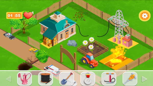 5.作为修理先生奔赴各个糟糕的地方,在规定时间内使用各种道具修复这里。