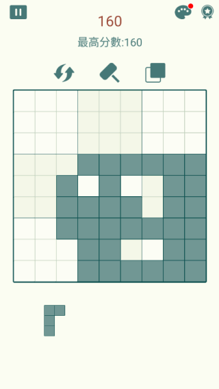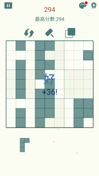 3、游戏界面极其简洁清爽,将方块拖到棋盘上拼接消除,让你动动手指即可快速的进行消除的;