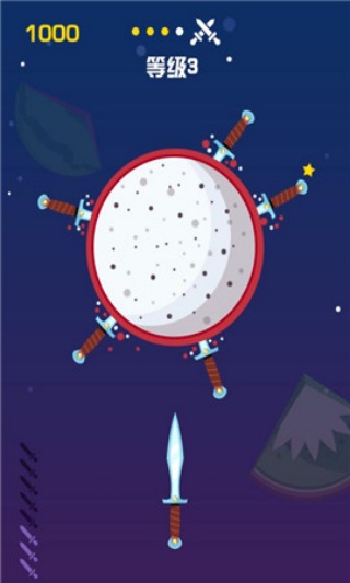 2.玩家要往转盘的空隙中插入飞刀,还要尽可能的避免撞击到转盘上已经插入的飞刀。