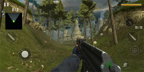 4、在游戏中左下角虚拟摇杆可以操控角色移动,右侧有射击以及蹲下、瞄准等按键,完成左上角的任务消灭敌人即可过关。