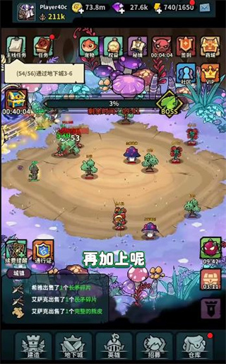 在这里玩家升级自己的英雄人物可以获得更多的加成,这些是我们后期击杀boss可以有更多的攻击力。
