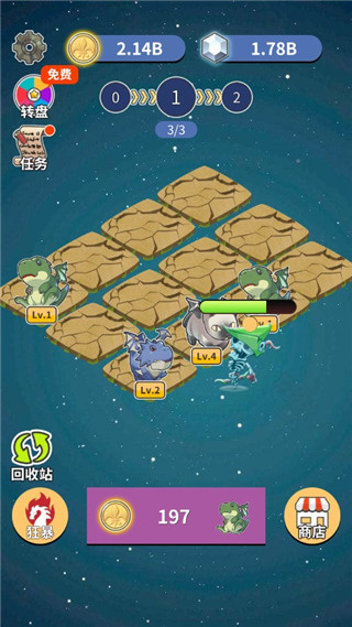 2.解锁新品种恐龙,或是合并升级恐龙,能使你的战斗力得到大幅提升哦。