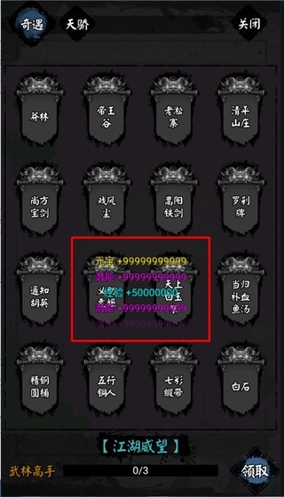 3、在 “奇遇” 界面,可看到有大量资源(元宝、潜能、基础、突破)的奖励选项。