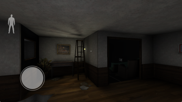 玩家通过第一人称视角来进行游戏,对于全屏操作很有利,玩家需要在黑暗中摸索,然后找到逃离房间的方法,一步一步的走,直到成功逃出这座房子。