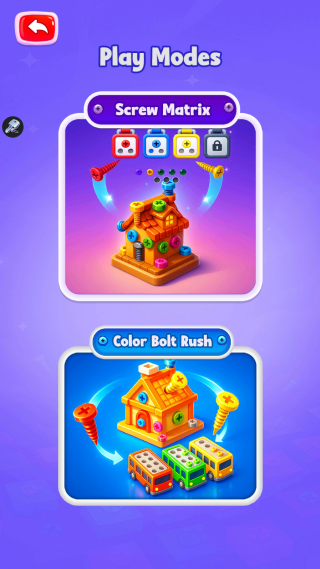 2.但随着关卡推进,挑战逐渐升级:不同型号的内六角螺丝、梅花螺丝、三角螺丝等特殊螺丝陆续出现;