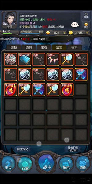 法宝万千,神通无穷。你可以通过探宝、打造等方式获得万千神兵利器和法宝。根据自己修行的方式任意搭配,走出自己独一无二的修仙路。