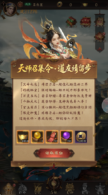2、每天优先完成“噬妖迷境”、“五鬼运财”等日常玩法,它们是稳定获取经验、铜钱和培养材料的重要来源。