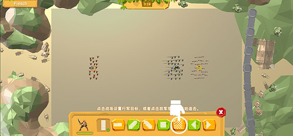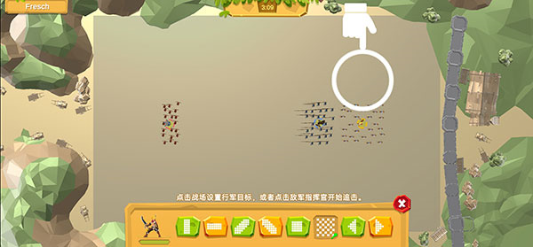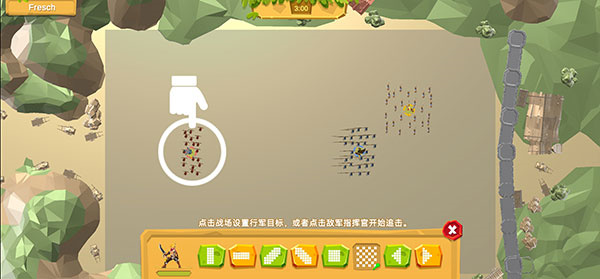 你要深入的运用策略进行对抗,还要在己方的阵营中排兵布阵,利用每回合自动出兵,兵种会自动在画面中进行战斗。