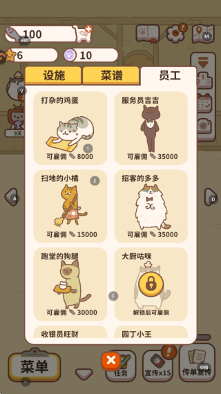 4.不同的员工可以帮助你完成不同的餐厅经营事项,积极解锁更多员工吧!