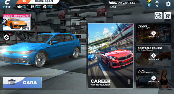 1.从最低级别的“街头挑战赛”开始,你需要赢得奖金、解锁新车辆和升级部件;