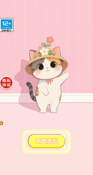 1、进入游戏后你会看到一只可爱的小猫,点击开始按钮即可开启挑战。