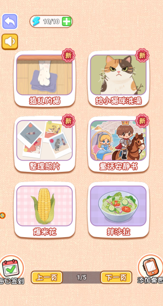 2、游戏提供多种趣味玩法,包括捣乱的猫、给小喵咪洗澡和整理照片等模式。