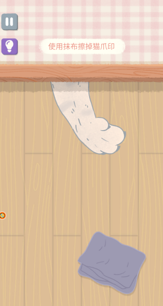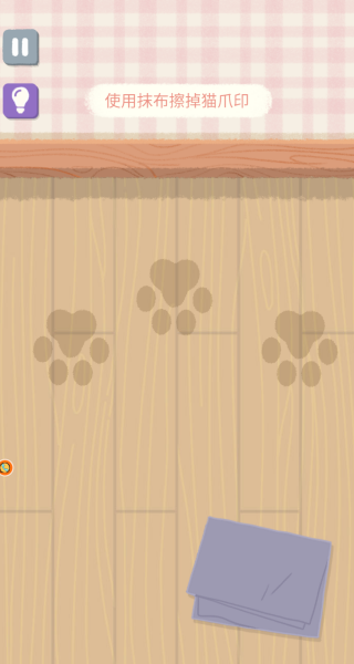 4、游戏清理过程中猫咪会不断制造新脚印并拖走你的抹布,增加游戏挑战性。