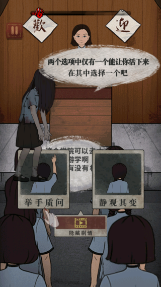 女寝异闻游戏是一款民国背景的悬疑解谜游戏。玩家在游戏中扮演的角色为了调查妹妹失踪的秘密而入读同一所女子学院。这个挑战有复古的背景。你需要扮演角色并面对各种艰难的选择。游戏虽然操作不难,但也有非常恐怖的场景和氛围。你必须通过简单的剧情场景带来真正惊心动魄的挑战。这个游戏的具体玩法规则非常简单。玩家只需要完成两个不同的选项即可进行选择。你必须面对成功的一半概率。玩家必须帮助角色逃离怨灵的魔爪。对于喜欢恐怖游戏的玩家来说这确实是一个非常好的选择。同时也创造了方便玩家体验的游戏通关效率。
