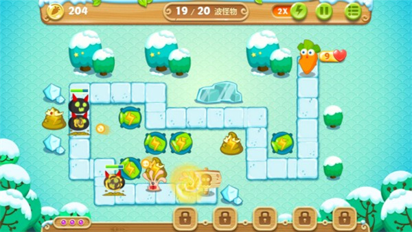 c、游戏采用萝卜题材,带给玩家经典的塔防游戏乐趣,不同的任务都是可以让你来做;