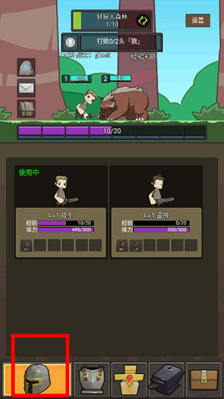 1、进入异世界勇者然后登录游戏,在游戏的主界面当中,人物是会自动打怪和升级的;