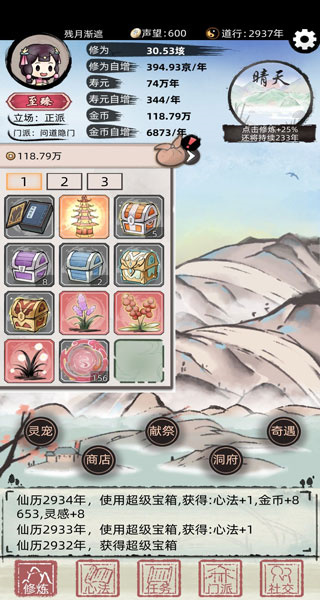 3. 每天记得将宗门任务全部完成,积累的贡献值是兑换稀有丹药和高级心法的重要货币来源。